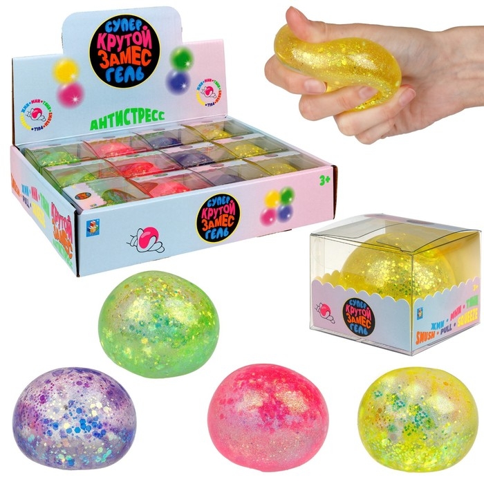 Мялка-антистресс «Блестящий шар», 6 см, цвета МИКС