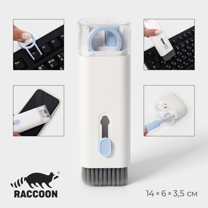 Мультифункциональный набор для чистки узких мест с распылителем и зажимом для клавиш Raccoon, цвет белый