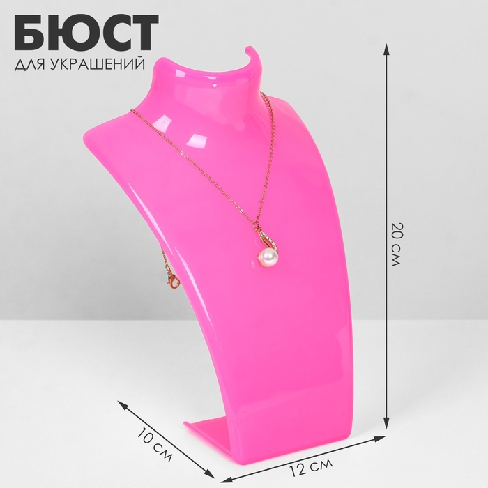Если вы занимаетесь реализацией разнообразных украшений и аксессуаров, то вам нужно наглядно продемонстрировать свой товар, представив его в лучшем виде. Бюст для украшений, 12×10×20 см, цвет розовый как нельзя лучше справится с этой задачей! У каждого украшения появится своё место, откуда его можно будет хорошо рассмотреть.