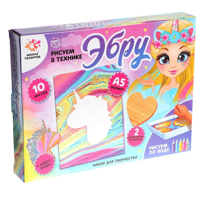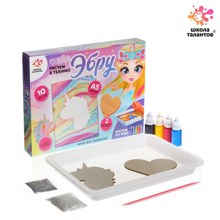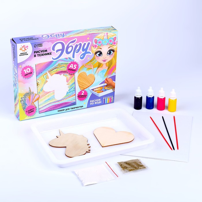 Набор для творчества «Рисуем в технике Эбру» , формат А4 + шкатулка из дерева
