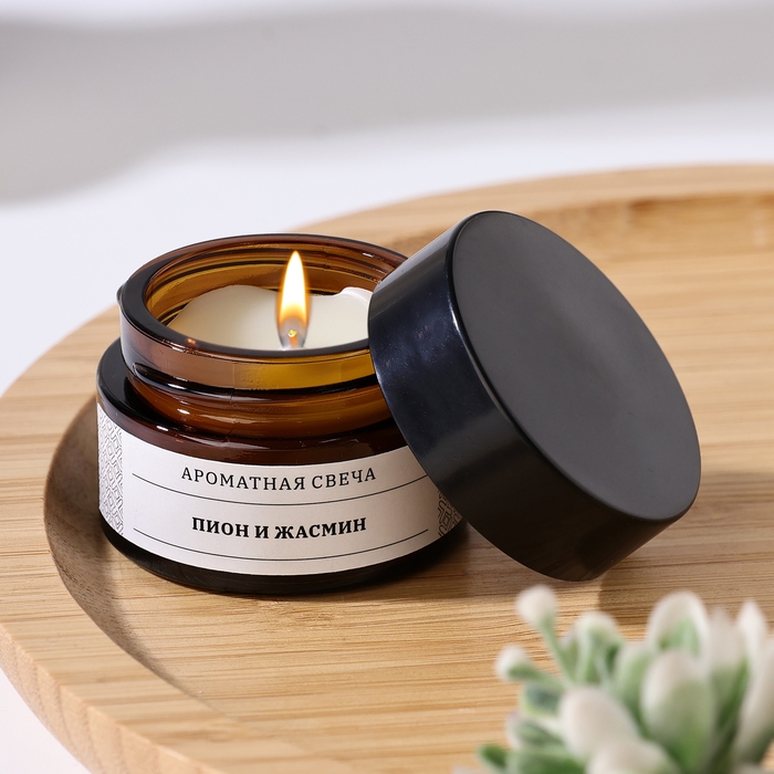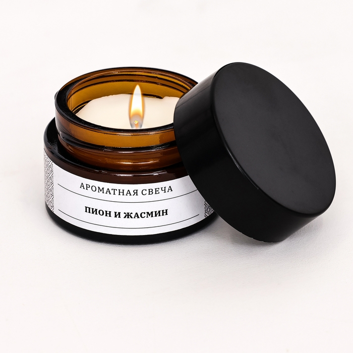 Свеча ароматическая в банке "Пион и жасмин", соевый воск, 12 г