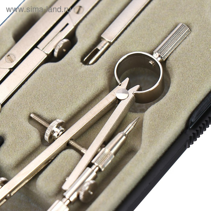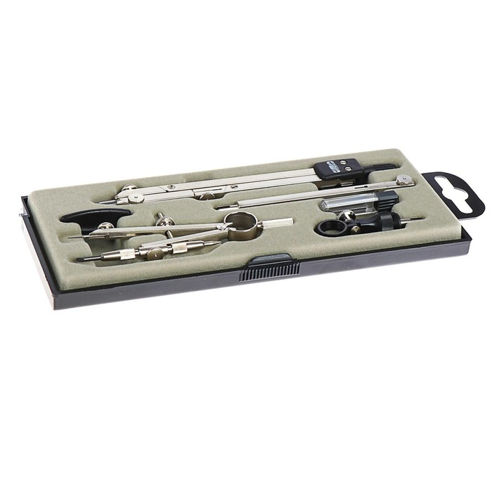 Набор чертежный 9 предметов (2 циркуля - 130 мм, грифель, точилка, рейсфедер, линейка, транспортир, 2 угольника), в пластиковом пенале
