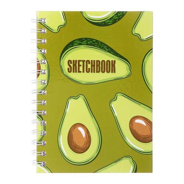 Скетчбук А5, 80 листов на гребне по длинной стороне "Авокадо", твёрдая обложка, блок 100 г/м²