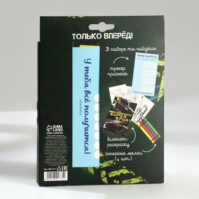 Подарочный набор блокнот-раскраска А6, трекер привычек и восковые мелки «Чемпиону»