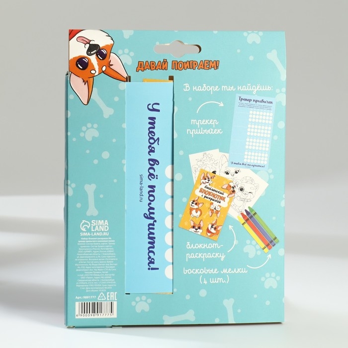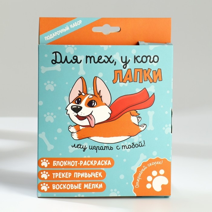 Подарочный набор блокнот-раскраска А6, трекер привычек и восковые мелки «Для тех, у кого лапки»