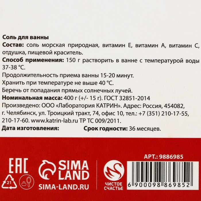 Cоль для ванны «Любви», 400 г, аромат спелой вишни, ЧИСТОЕ СЧАСТЬЕ