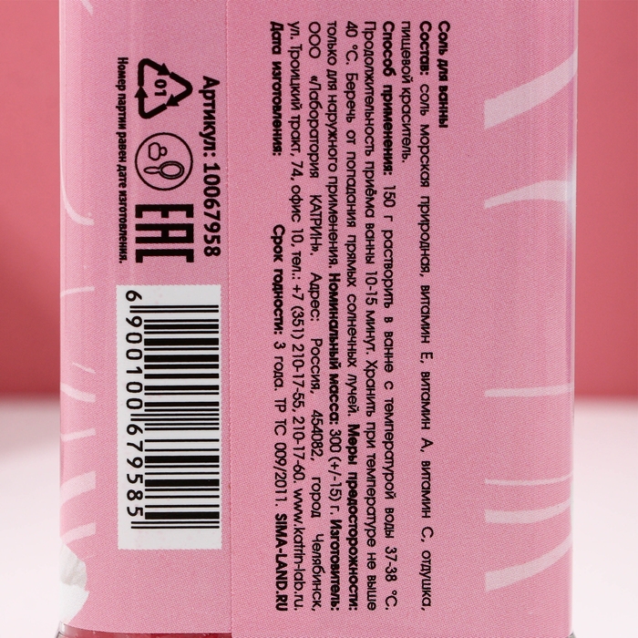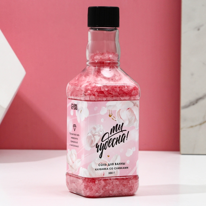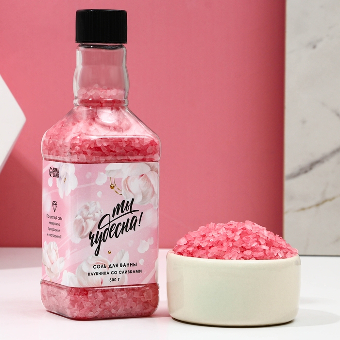Соль для ванны «Ты чудесна!», 300 г, аромат клубники со сливками, ЧИСТОЕ СЧАСТЬЕ