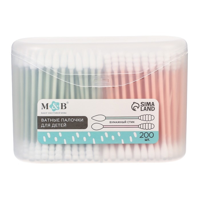 Ватные палочки для детей Крошка Я, коробка 200 шт., наконечник - классика, хлопок/бамбук