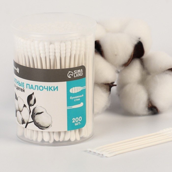 Ватные палочки, стакан 200 шт., пластик, цвет белый