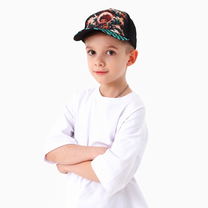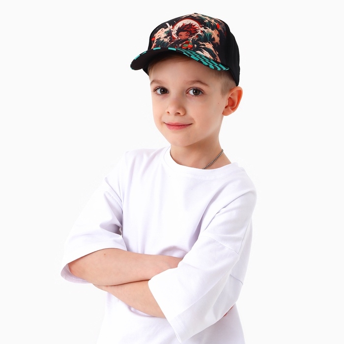 Кепка детская для мальчика «Волны», аниме, цвет чёрный, р-р 52-54, 5-7 лет