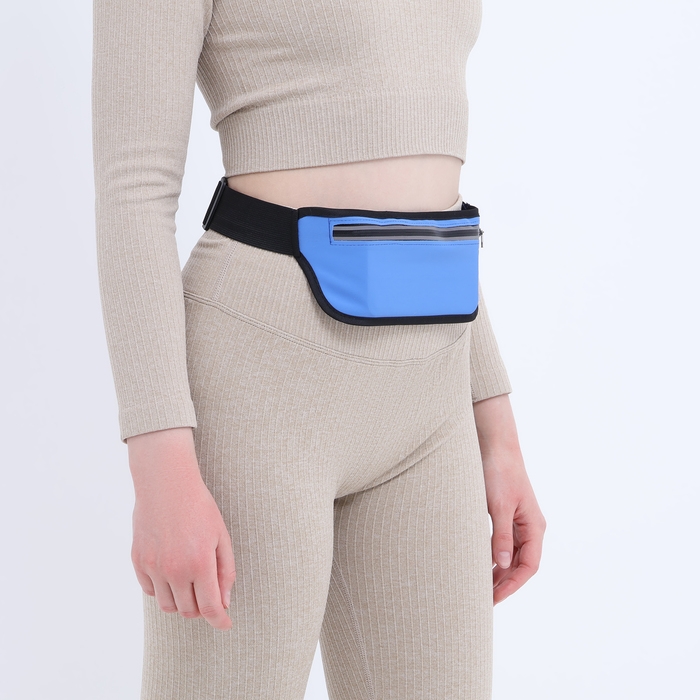 Сумка поясная на молнии, светоотражающие элементы, цвет синий