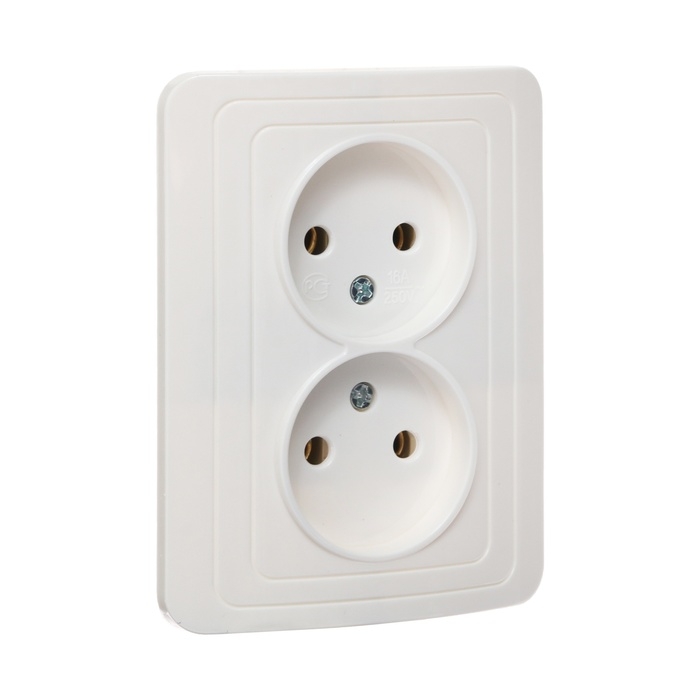 Розетка двухместная Luazon Lighting "Орион", 10 А, скрытая, без з/к, белая