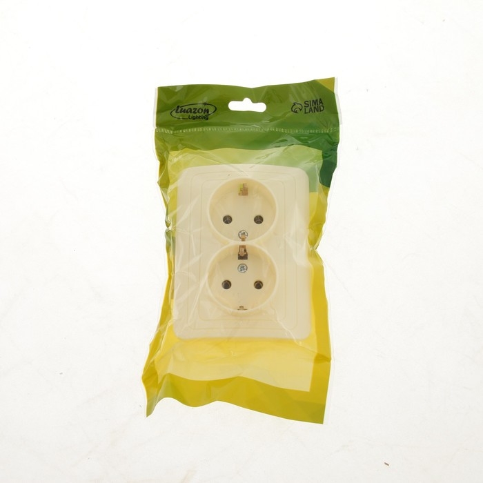 Розетка двухместная Luazon Lighting "Орион", 16 А, скрытая, с з/к, бежевая