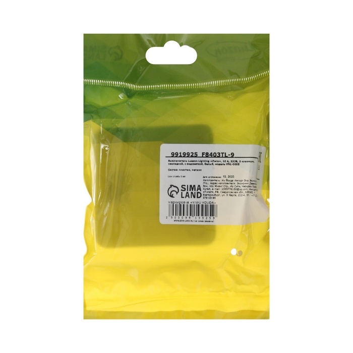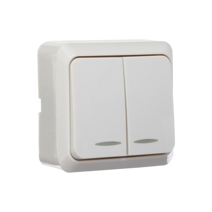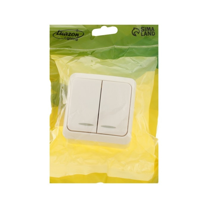 Выключатель Luazon Lighting "Лига", 10 А, 2 клавиши, накладной, c подсветкой, белый