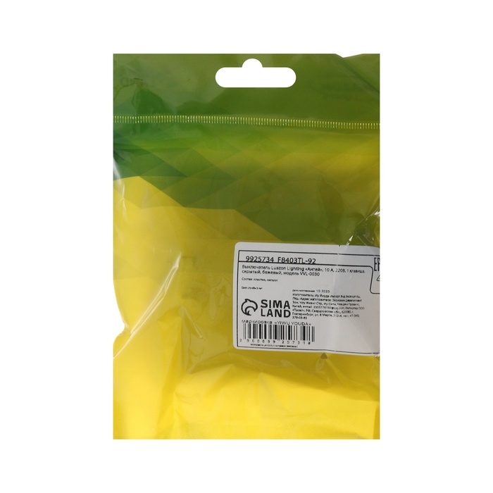 Выключатель Luazon Lighting "Антей", 10 А, 1 клавиша, скрытый, бежевый