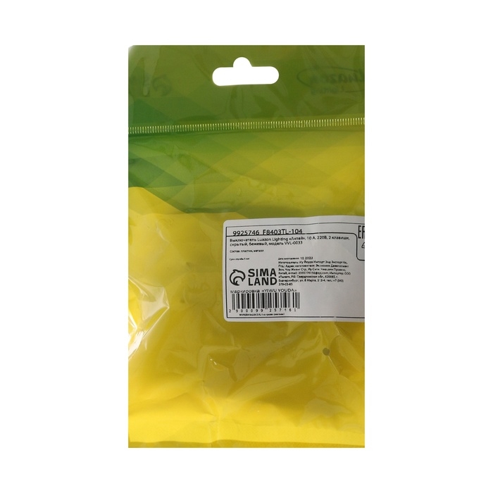 Выключатель Luazon Lighting "Антей", 10 А, 2 клавиши, скрытый, бежевый