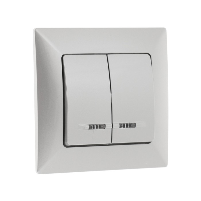Выключатель Luazon Lighting "Антей", 10 А, 2 клавиши, скрытый, с подсветкой, серебристый