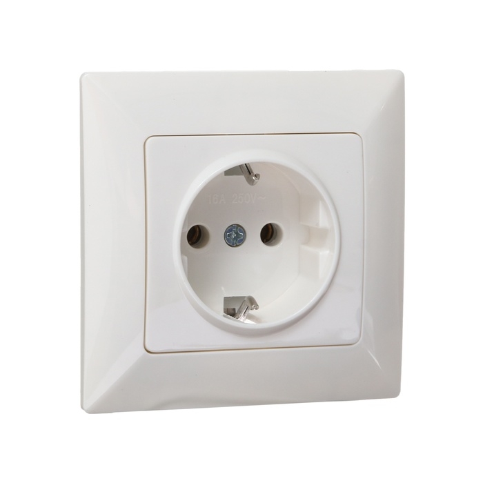 Розетка одноместная Luazon Lighting "Антей", 16 А, скрытая, с з/к, белая