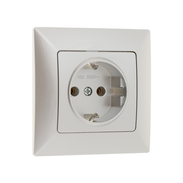 Розетка одноместная Luazon Lighting "Антей", 16 А, скрытая, с з/к, серебристая