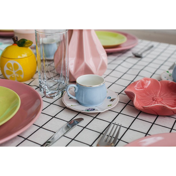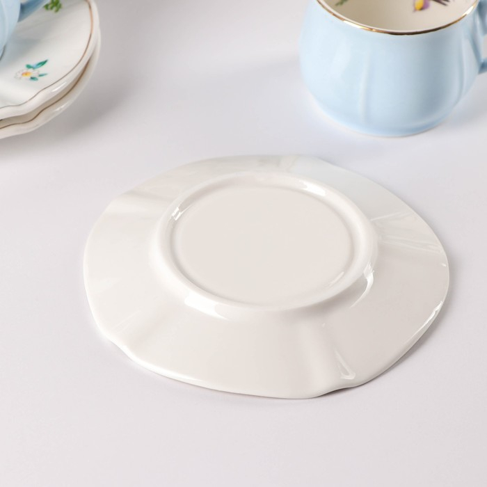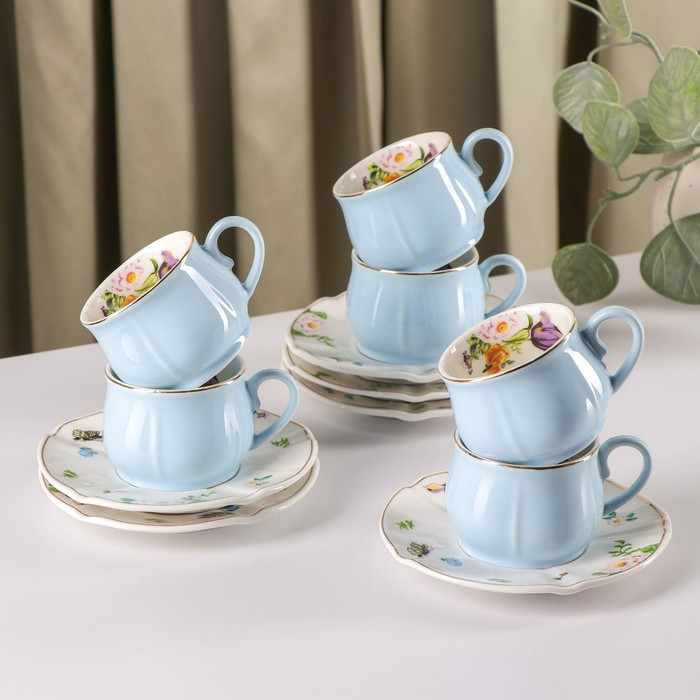 Сервиз керамический кофейный «Сирена», 12 предметов: 6 чашек 100 мл, 6 блюдец d=12 см, цвет голубой