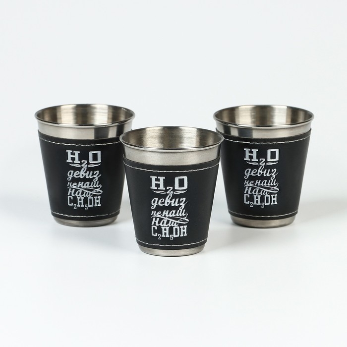 Набор стопок из 3 штук по 70 мл из пищевой нержавеющей стали в компактном чехле. Легкие и компактные, удобно брать с собой на отдых, рыбалку, охоту, природу или в путешествия.