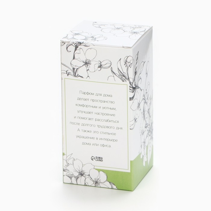 Диффузор упакован в красивую коробку с изображением цветов, что делает его прекрасным подарком для ваших близких.
