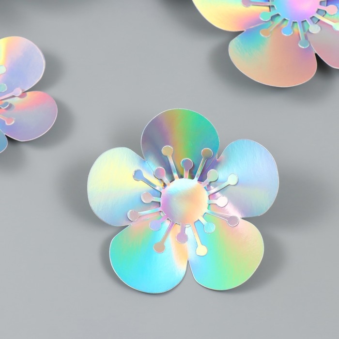 Наклейка бумага "Цветок. Серебристая голография" набор 6 шт 13х12,3х0,6 см