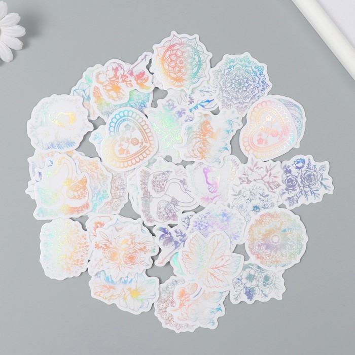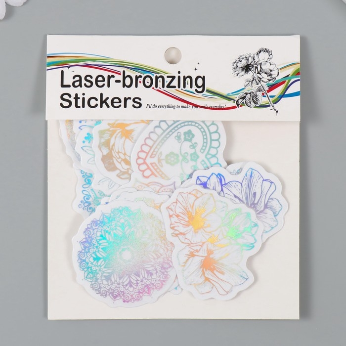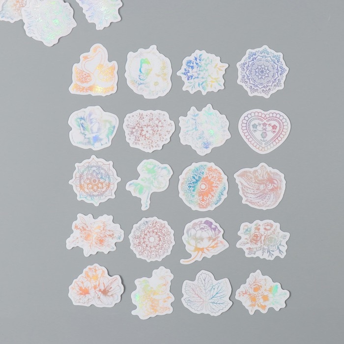 Наклейка пластик "Голография. Цветы" набор 38 шт 13х11,5х0,5 см