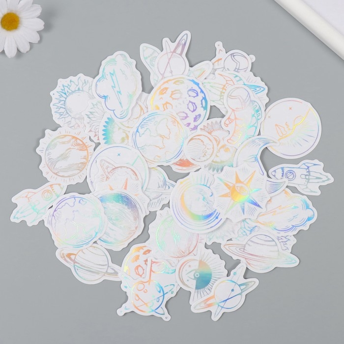 Наклейка пластик "Голография. Космос" набор 38 шт 13х11,5х0,5 см