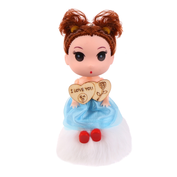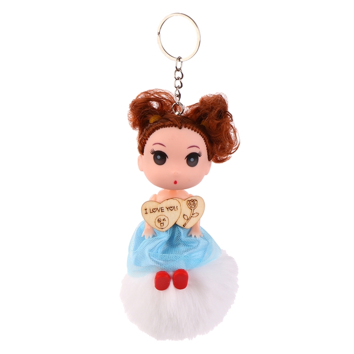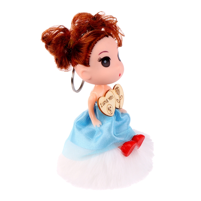 Кукла-брелок «Брюнетка» на белом помпоне, 14 см