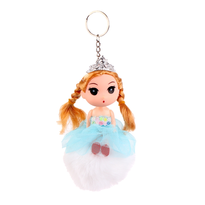 Кукла-брелок «Девочка» на белом помпоне, 14 см