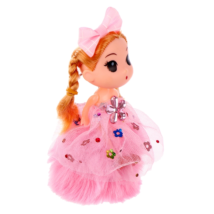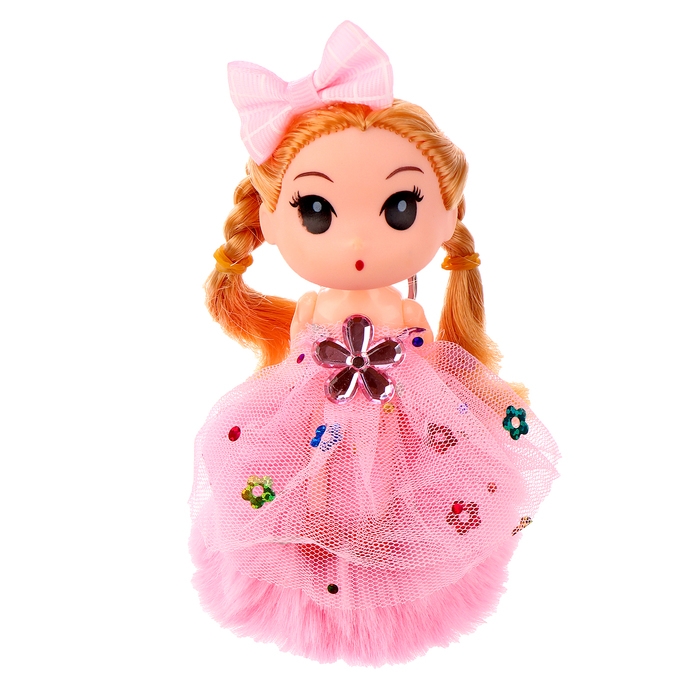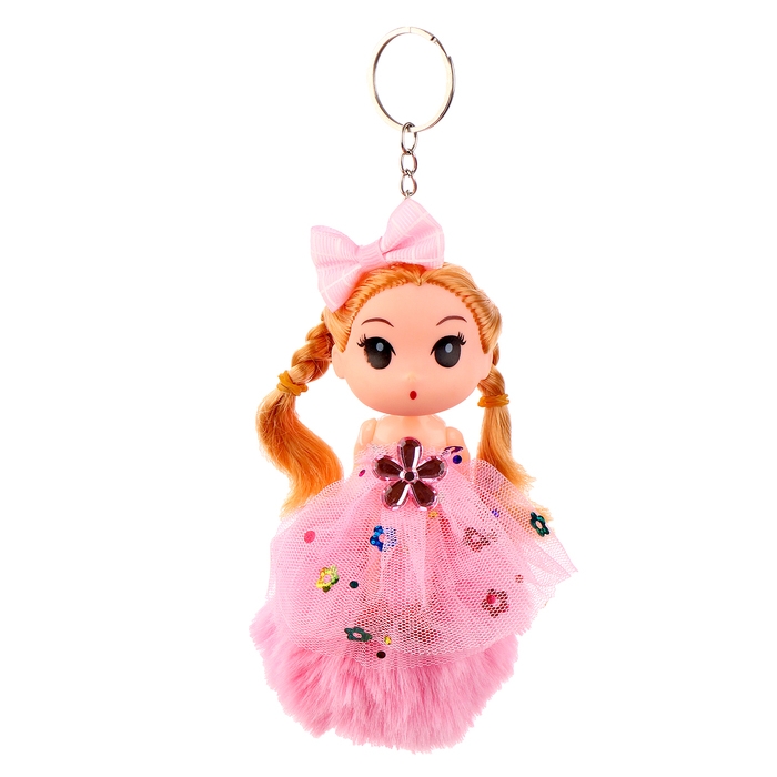 Кукла-брелок «Девочка» на розовом помпоне, 14 см