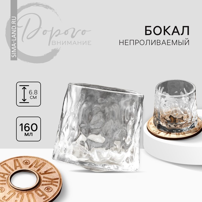 Чаша бокала идеально располагается в ладони, тепло которой полностью раскроет и эффектно подчеркнёт аромат и вкус вина, бренди, виски или коньяка. Ваши близкие, друзья, коллеги, родные по достоинству оценят этот оригинальный подарок. Изюминка бокала - отсутствие хрупкой ножки, что делает его оригинальным и устойчивым даже на мягкой и неровной поверхности. Данный бокал под виски - это незаменимый элемент сервировочной посуды и необычного украшения вашего стола, бокал с подставкой поможет создать атмосферу праздника и подчеркнуть вкус любого напитка.