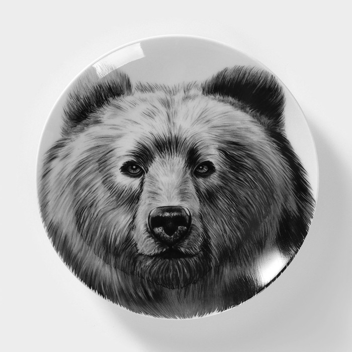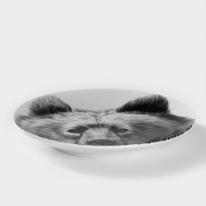 Тарелка фарфоровая «Медведь», d=17,5 см, белая