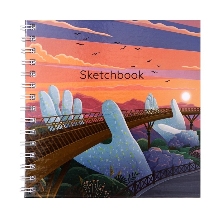 Скетчбук 195 х 195 мм, 80 листов на гребне "Пейзаж", твёрдая обложка, блок 100 г/м²
