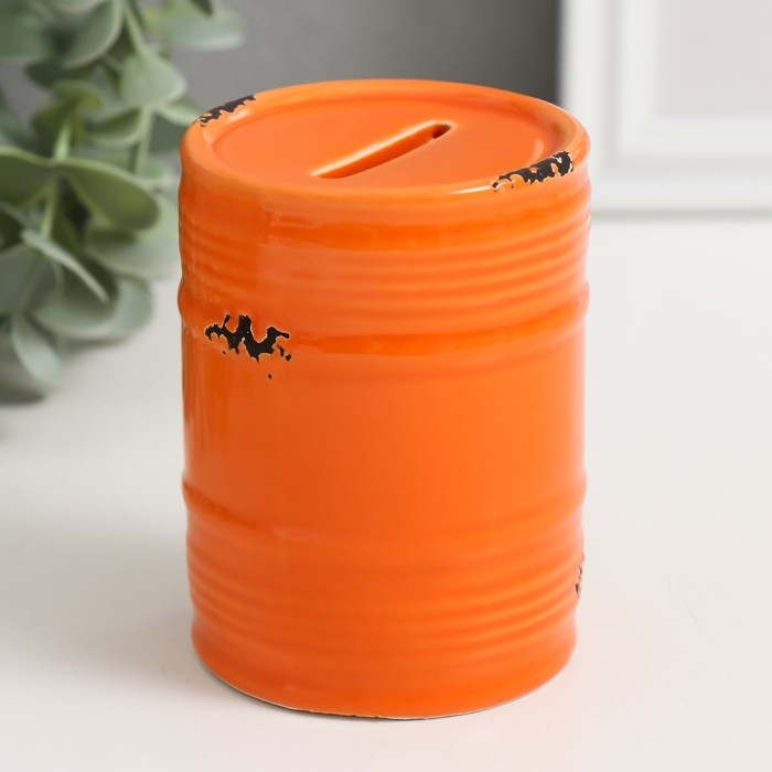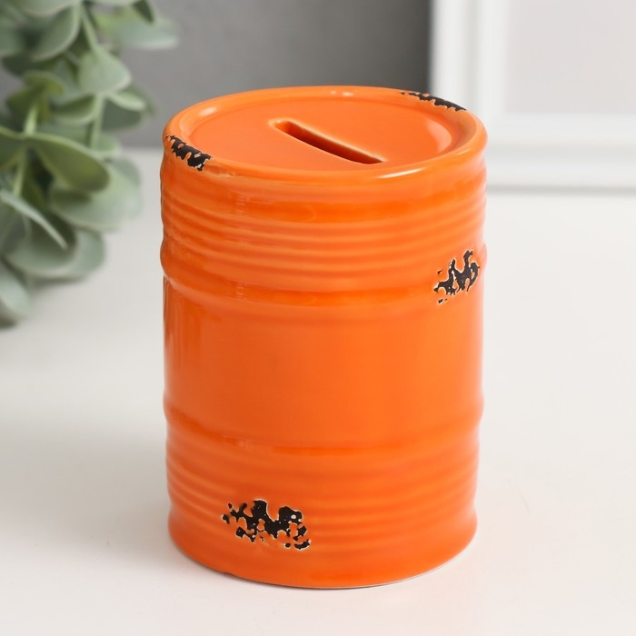 Копилка керамика "Оранжевая бочка" 6,5х6,5х9 см