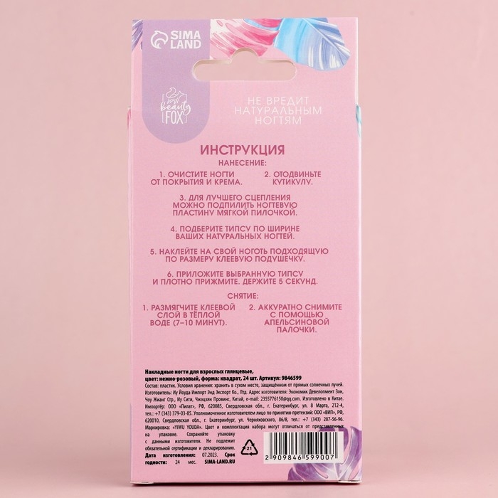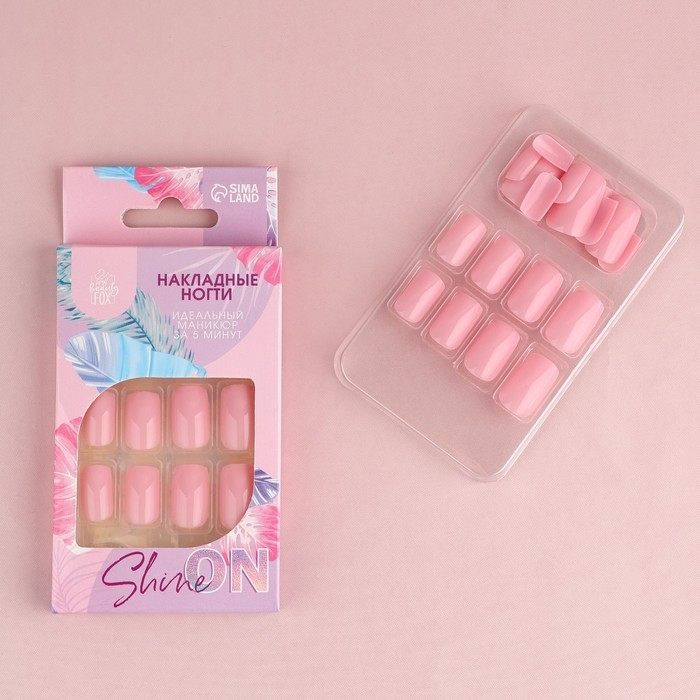 Накладные ногти «Нюд», 24 шт, клеевые пластины, форма квадрат, цвет глянцевый нежно-розовый