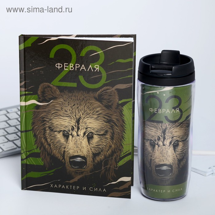 Подарочный набор «23 февраля медведь»: ежедневник и термостакан