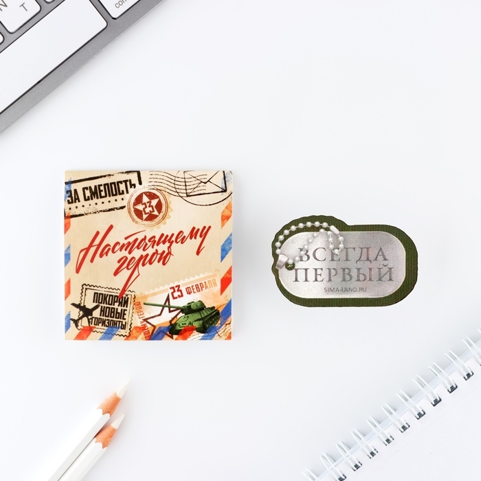 Подарочный набор: блокнот и значок «С 23 февраля»