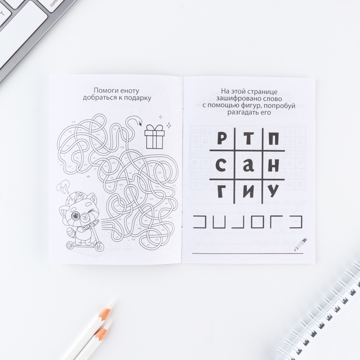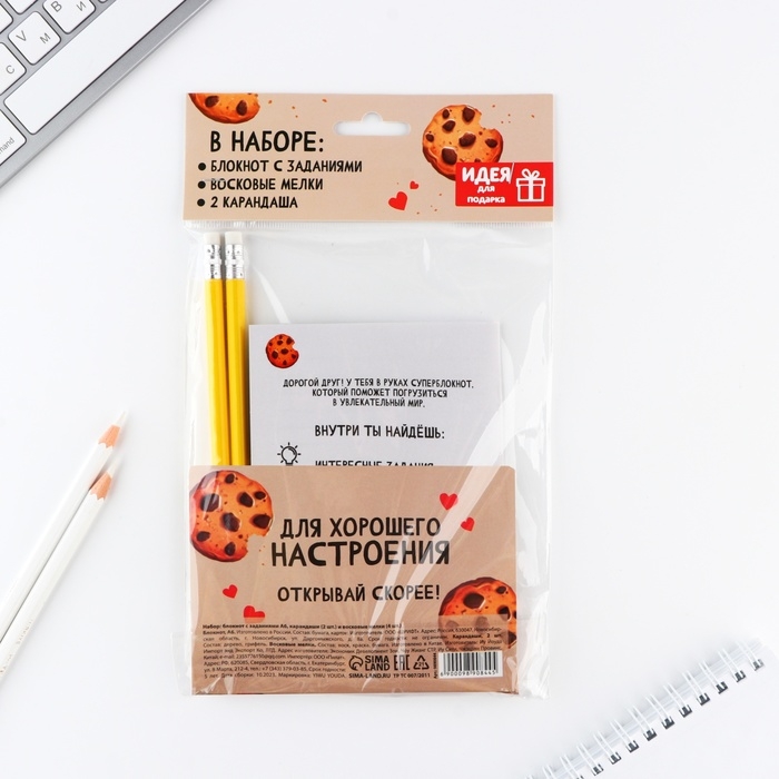 Подарочный набор блокнот А6, карандаши (2 шт.) и восковые мелки (4 шт.) «Енотик»