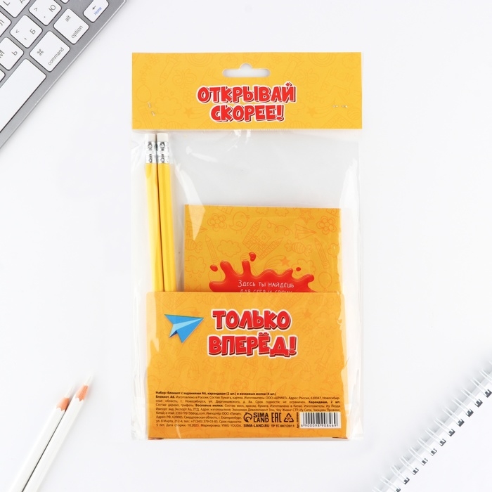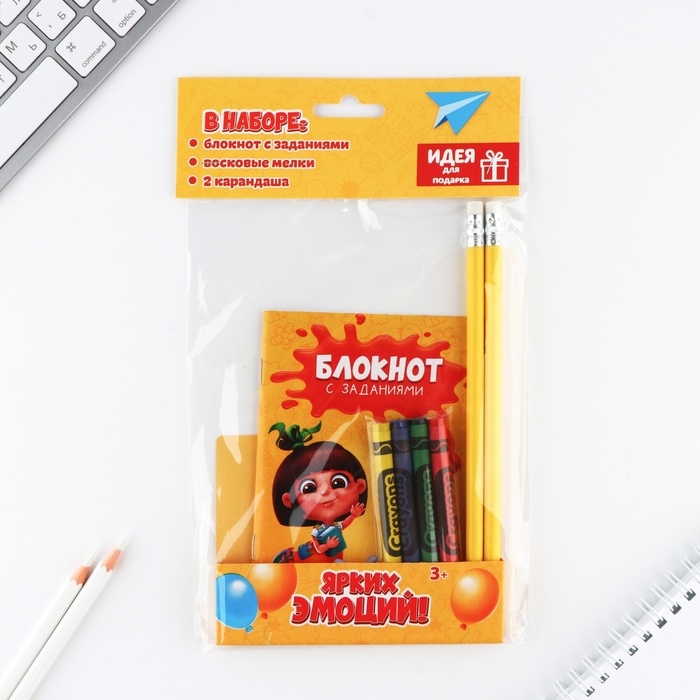 Подарочный набор блокнот А6, карандаши (2 шт.) и восковые мелки (4 шт.) «Ярких эмоций»