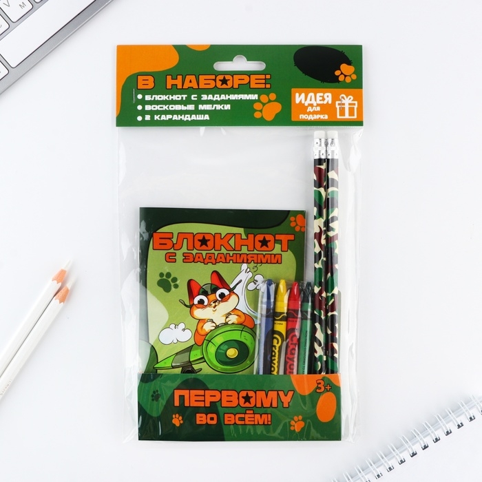 Подарочный набор блокнот А6, карандаши (2 шт.) и восковые мелки (4 шт.) «Первому во всем»