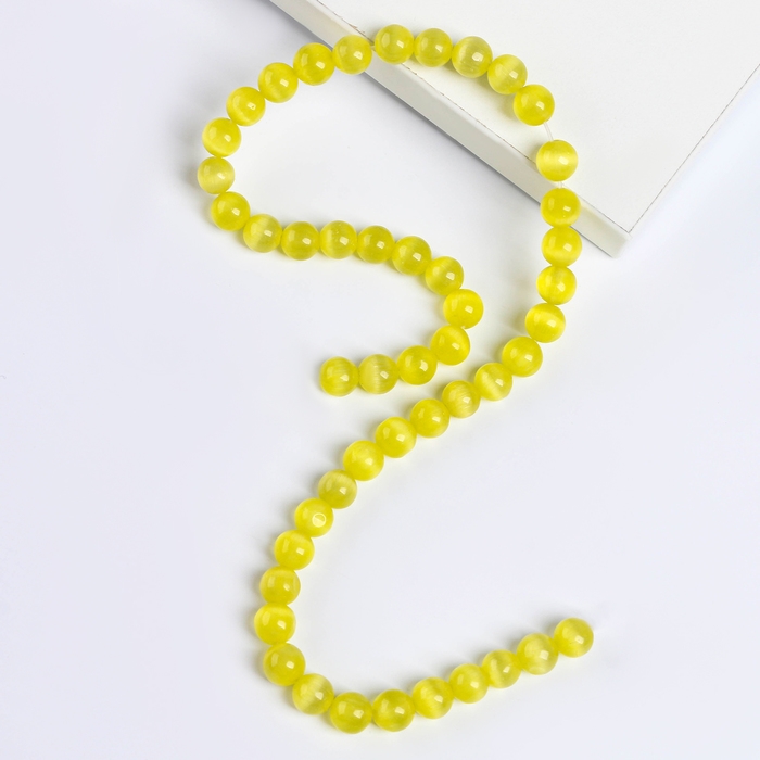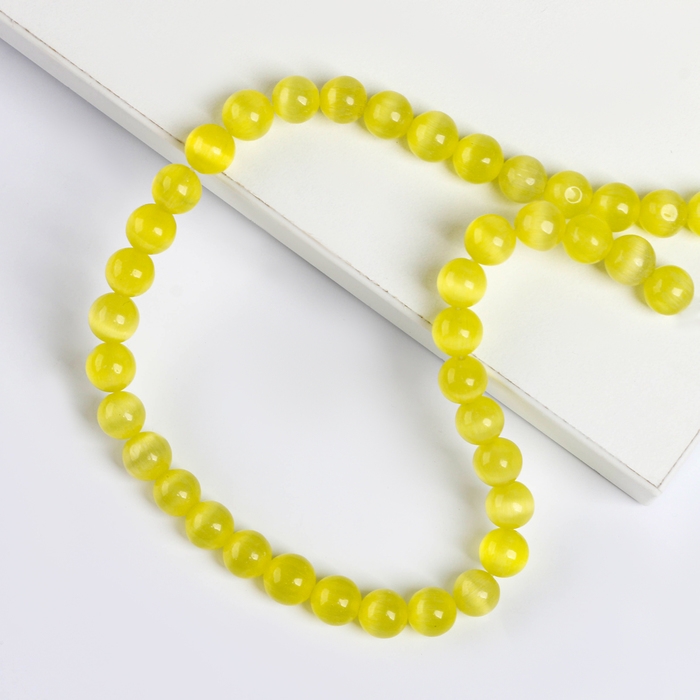 Бусины из натурального камня «Кошачий глаз» набор 50 шт., размер 1 шт. — 8 мм, жёлтый