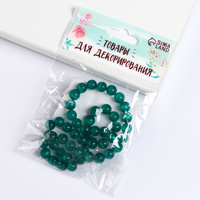 Бусины из натурального камня «Кошачий глаз» набор 50 шт., 1 шт. — 8 мм, зелёный