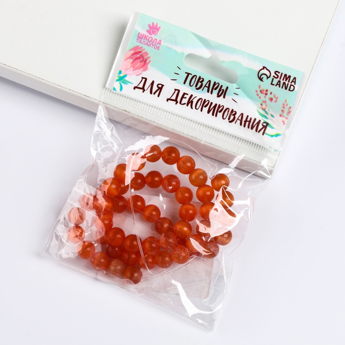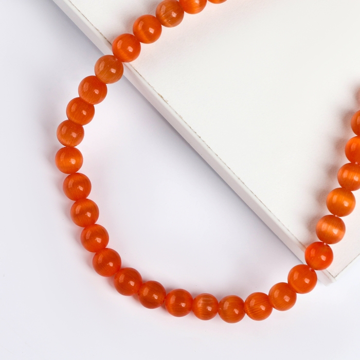 Бусины из натурального камня «Кошачий глаз» набор 50 шт.,1 шт. — 8 мм, оранжевый