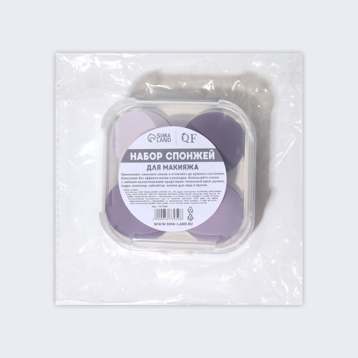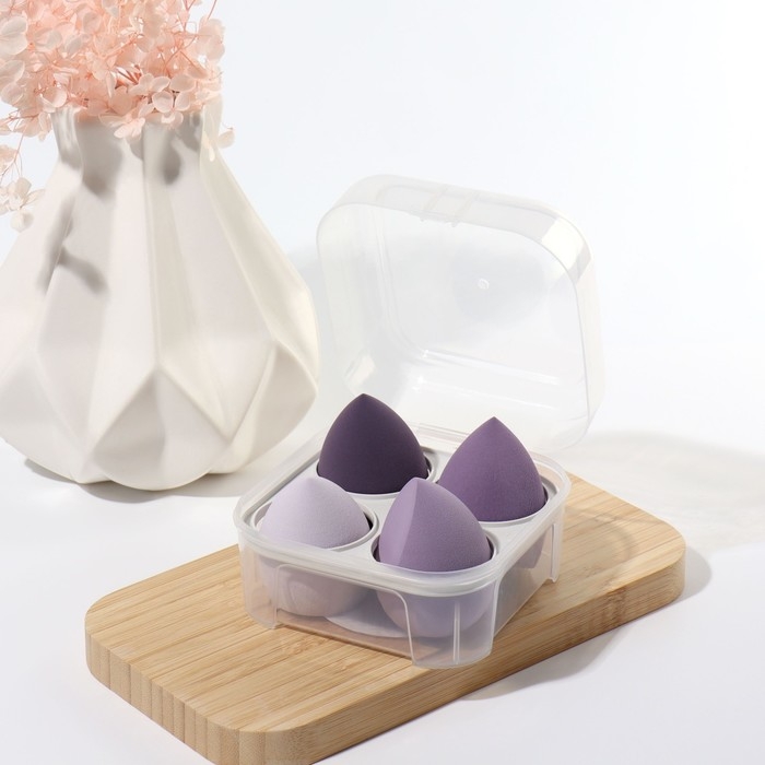 Спонжи для макияжа, набор - 4 шт, увеличиваются при намокании, цвет фиолетовый