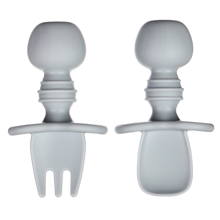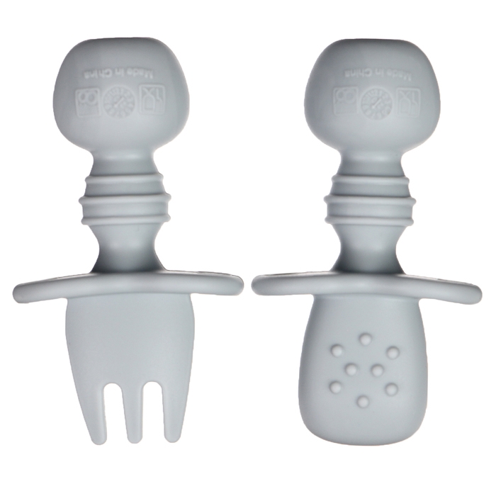 Набор детских столовых приборов, вилка, ложка, цвет серый