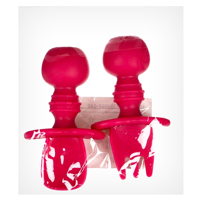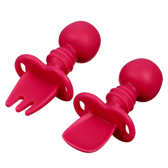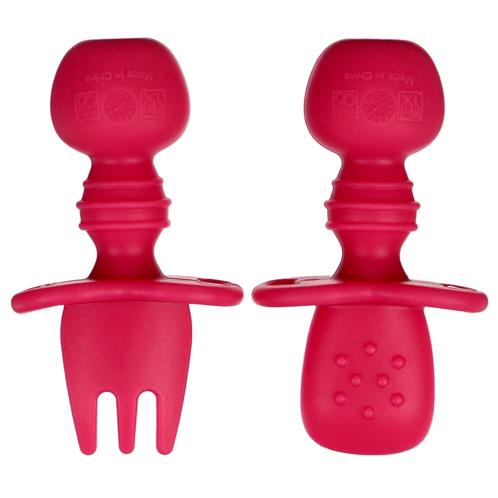 Набор детских столовых приборов, вилка, ложка, цвет розовый
