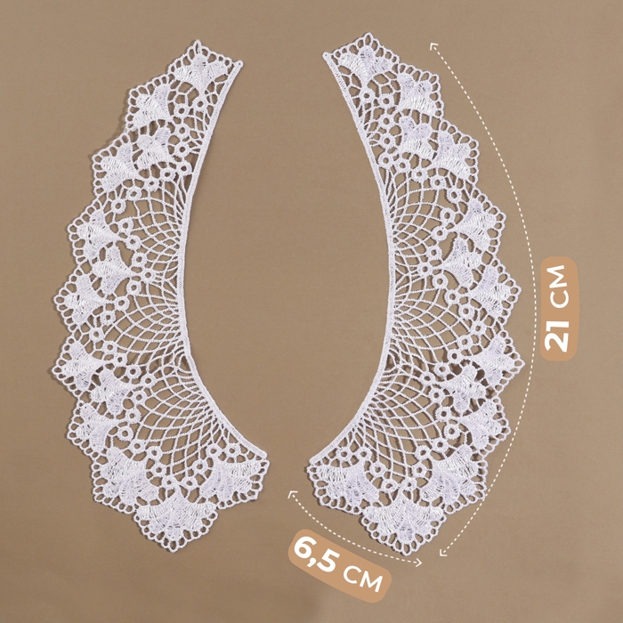Воротник пришивной, гипюровый, 21 × 6,5 см, цвет белый