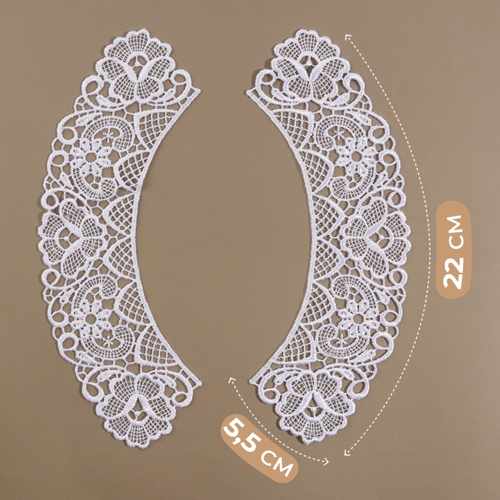 Воротник пришивной, гипюровый, 22 × 5,5 см, цвет белый